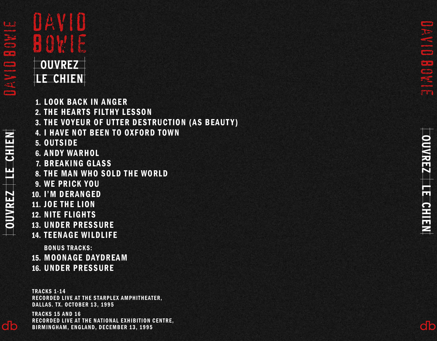 david bowie - ouvrez le chien, unofficial cd inserts