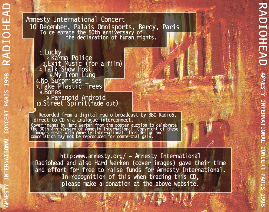radiohead - amnesty international concert, paris - 1998