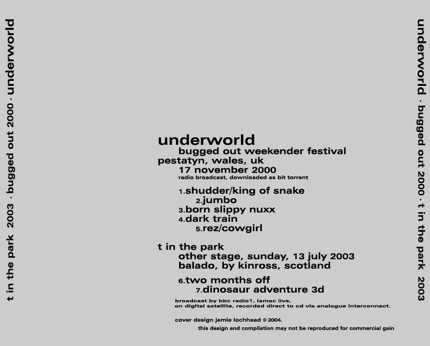 - bugged out weekender festival, preststyn, wales. - 17 november 2000