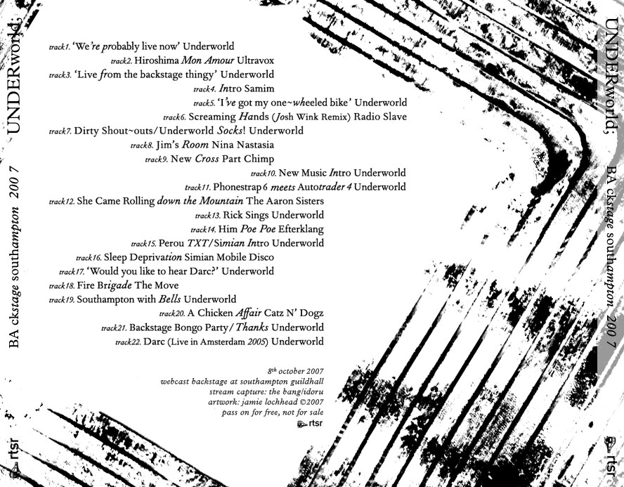 underworld - backstage webcast, southampton, uk. - 8 october 2007